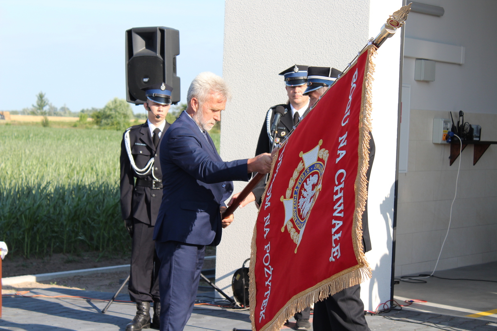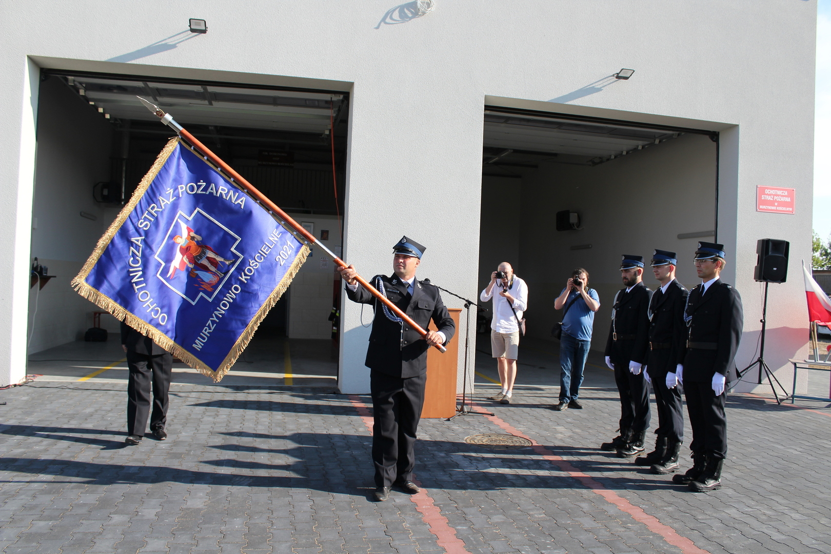 W dniu 3 lipca 2021 roku w Murzynowie Kościelnym odbyła się uroczystość otwarcia nowej strażnicy oraz nadania sztandaru dla jednostki. Uroczystości rozpoczęła się msza święta, którą odprawił ks. Radosław Nowak. Następnie apel rozpoczęto od złożenia meldunku komendantowi powiatowemu PSP młodszemu brygadierowi Tomaszowi Skorlińskiemu przez dowódcę uroczystości druha Oskara Waszaka. Następnie budynek remizy został oficjalnie oddany do użytku przez symboliczne przecięcie wstęgi oraz poświęcenie. W dalszej części apelu został odczytany akt nadania sztandaru przez członka prezydium zarządu wojewódzkiego ZOSP RP województwa Wielkopolskiego Pana Tadeusza Tomaszewskiego. Po oficjalnym przekazaniu sztandaru nastąpił czas na przemówienia, gratulacje oraz wręczanie prezentów. Apel zakończył się złożeniem meldunku, oraz zwiedzaniem strażnicy. Po urczystym przemarszu pod szkołę przyszedł czas na wspólną zabawę podczas festynu.